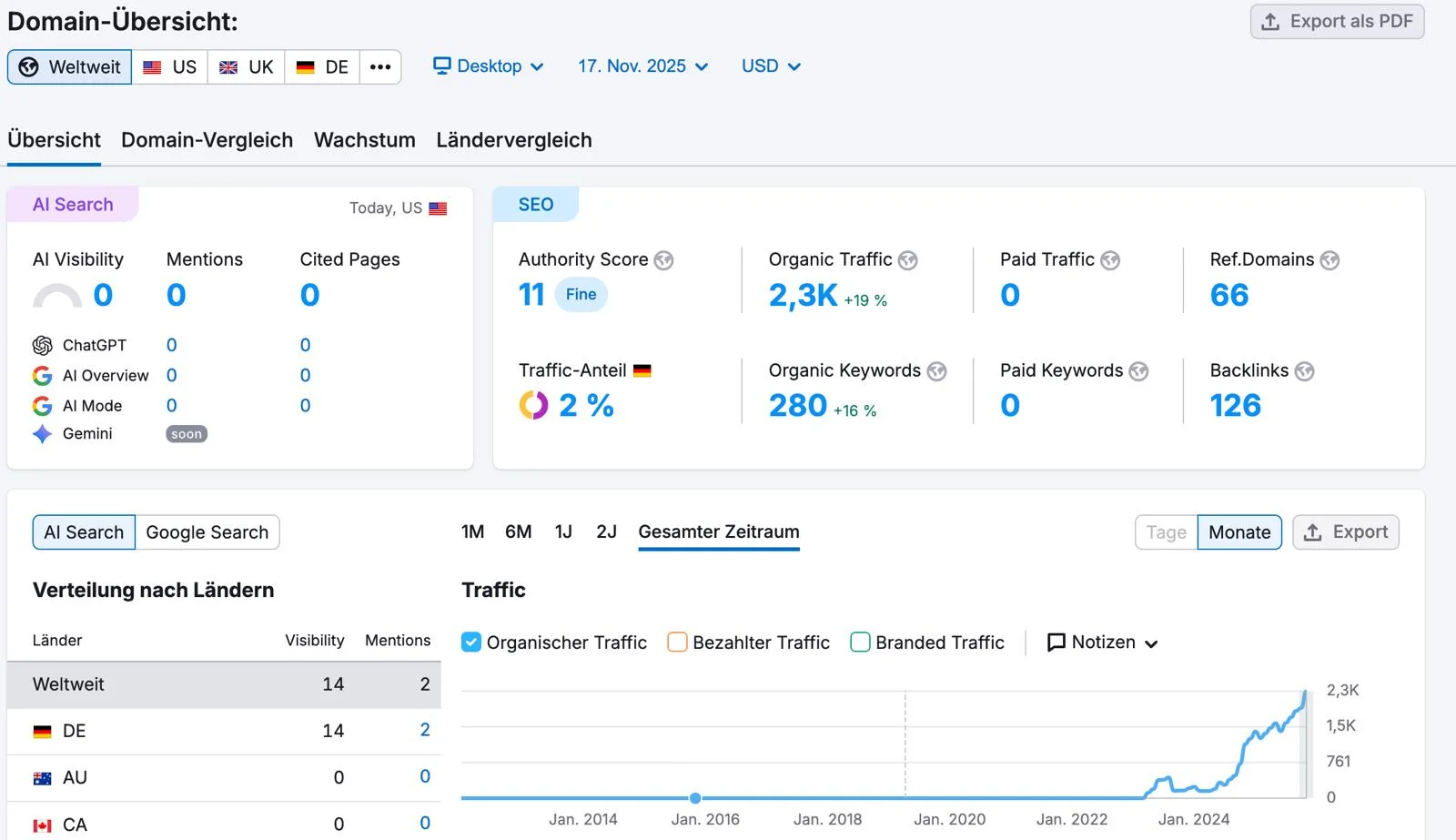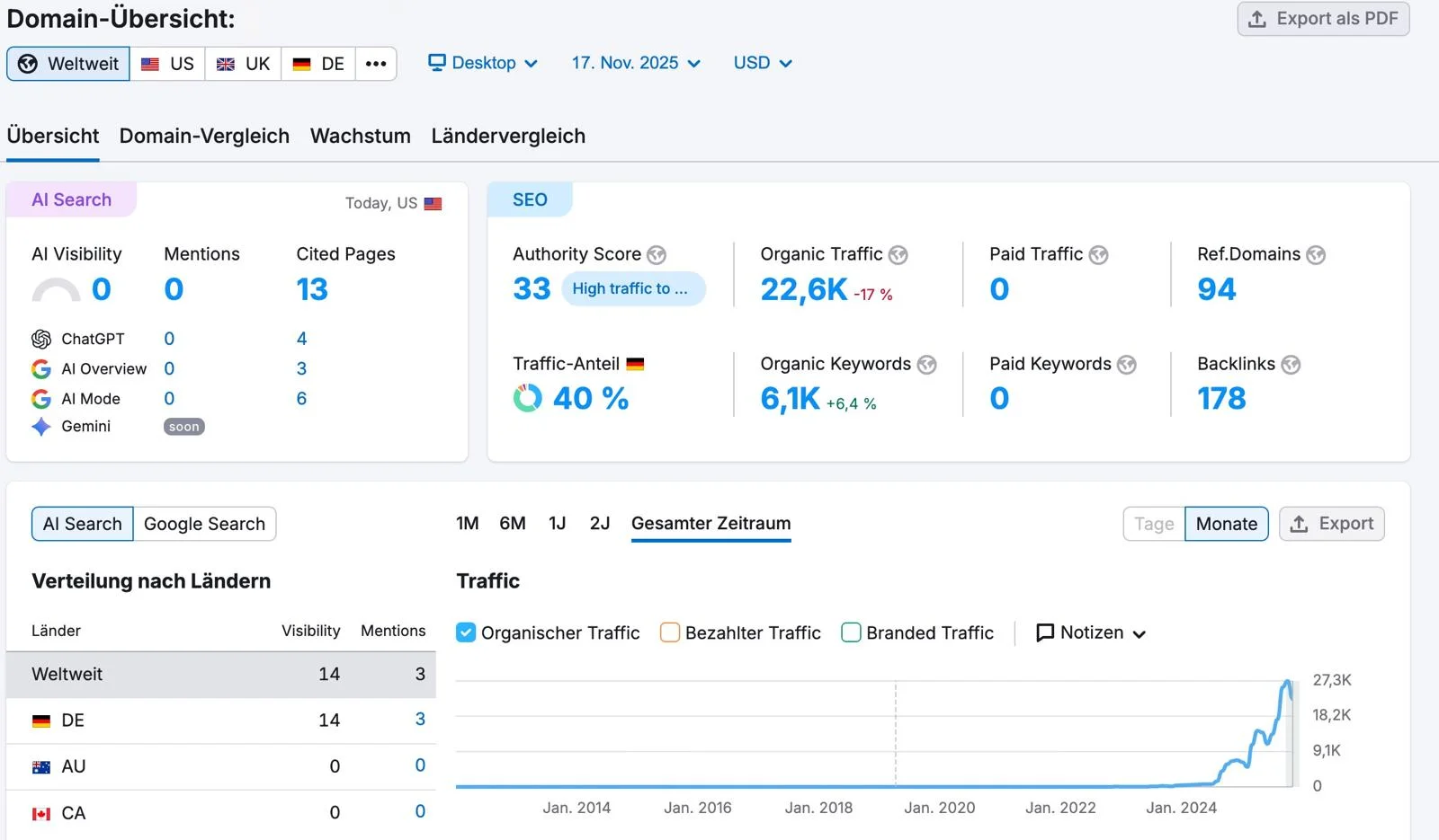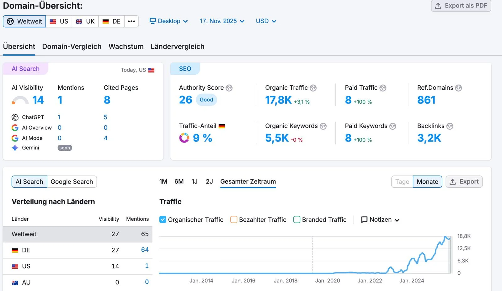 Der Erfolg einer SEO Agentur wird anhand verschiedener Kennzahlen gemessen, z. B. Besucherzahlen, Rankings, Conversions und Nutzerverhalten. Tools wie Google Analytics und Search Console zeigen dir detaillierte Daten über organischen Traffic, Klicks, Sichtbarkeit und Zielerreichung. Zusätzlich liefern regelmäßige Reports einen klaren Überblick über durchgeführte SEO Maßnahmen und Fortschritte.